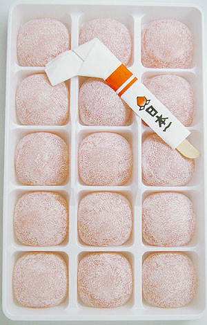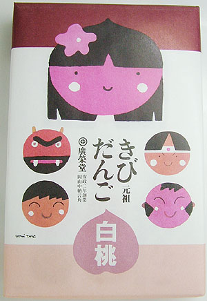 ピンクのパッケージが目立つ、白桃味のきびだんご。岡山名産の白桃をイメージして作られた亜種商品。他メーカーからも出ているが、「マスカットきびだんごよりはゲテモノではない」というイメージが。 このパッケージの主人公は女の子みたい。桃子ちゃん?桃太郎とは関係ないキャラだな。えんじ色とピンクをグレイッシュトーンで使ってあって、派手さはあるのに上品。これまた秀逸デザイン。 このパッケージには、イヌとキジが居ない。きなこにも出して貰えなかったイヌが気の毒すぎる・・・(涙)。 きなこと同じく、包装紙を破るとデザインの違った箱が出てくる。このパッケージの高級感も廣榮堂の魅力のひとつですな。 やわらかさ:もちもち 甘さ:甘い 色:ピンク 香り:甘い香り 色はピンク色。ここで問題になるのが、「白桃の果実はピンクではない」という事。でもまぁピンクじゃないと感じが出ないわな。 そこで登場、天然色素「コチニール色素」。安全な色素とされているが…原材料が「エンジ虫」だってのはけっこう有名な話。ソーセージやカマボコ、清涼飲料水にも使われている。…まぁ虫だと言う事は忘れて頂こう。 もっちりと弾力があり、気持ちの良い歯ざわり。フルーティーな香りは・・・白桃と言うよりはサイダーのよう。味はポンカン飴に近いような気が・・・。昔食べたピーチ味のゼリー菓子(外に砂糖がまぶしてある)にも似てる(名前忘れたし)。 ピンク色がとても可愛らしいし、女の子のお土産にはピッタリかも。
