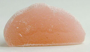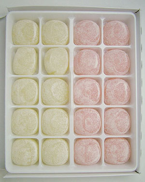 岡山に輝くきびだんご界の星、廣榮堂にも認知度の低いきびだんごは存在する。それがこれ、「紅白きびだんご」である。 ホームページにも商品カタログにも載っていないコレは、お正月などおめでたい時に出現するレアだんごなのだ。 ・・・・かく言う私も知らなくて(汗)これは友達が見つけて買ってきてくれたもの。 お正月に狂言の舞台を観に岡山市民会館に行ったら、たまたま出てた廣榮堂の出店で購入したらしい。 あやうく、これの存在を知らぬまま一生を終える所だった。あぶないあぶない(汗)。 特別仕様の赤い包装紙。めでたい。シンプルながら品の良いデザイン。定番商品ではないのに中の箱にも印刷があるのは王者の威厳か。 白とピンクのたんごが整然と並び、均等な形が実に美しい。 白い方・・・お味は案の定、プレーンと全く同じ。 そしてピンクの方・・・見た目は白桃っぽいけど・・・やっぱりプレーンと同じ。例の「エンジ虫」で着色してあるだけだねぇ。 一個ずつ分包してある「元祖きびだんご」に比べると、早く硬くなってしまうみたい。開けたらさっさと食べちゃおう。 日本にはお祝い事の時、紅白まんじゅうを配る習慣がある。 岡山県民に生まれたからは、祝い時に「紅白きびだんご」を配ってみては如何だろう。 一味違う演出に、大好評間違いなし!?!?