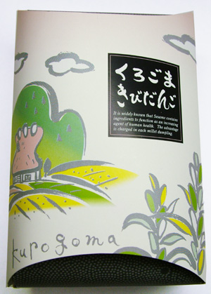 やわらかさ:わらかいけど、つぶつぶ 甘さ:こってり甘い 色:黒に近い灰色 香り:少し香ばしい パッケージはドーム型の箱。POPだけど上品さもあり、センスが良い。 きびだんごの色にけっこうビビる。黒いっっ、思ったより黒い。聞くと、1個につき300粒分の黒ゴマが入っているらしい。うわー健康志向。 あまり香りは無いが少しだけゴマの香ばしさが・・・口に入れるとツブツブ・プチプチとゴマを感じる。 ゴマとピーナッツバターのせいか味は濃く、甘みも強い。だんごと言うより和スゥィーツといった感じ。デザートとして、これはこれで美味しいと思われる。きびだんごっぽくは無いけどねぇ・・・。 ひとつ難点。だんごが糊になって、歯のいたる所に黒ゴマがくっつく。職場やデートで召し上がる際には注意しましょう。