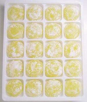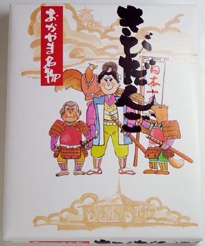 「しきしまど〜♪」というサウンドロゴも馴染み深い敷島堂。メガヒットを飛ばしたオリジナル商品は無いような気がするけど、地域に浸透している有名店ではある。 プレーンのきびだんごは20個入りと40個入(1,050円)。 パッケージは和風と見せかけて、けっこうコミカルな絵が描いてある。鎧を着た犬が二足歩行しとる。サルも人間のオッサンみたいだし、キジも服着てるし。見れば見るほど味が出てくるな・・・。 やわらかさ:やわらかい 甘さ:甘さひかえめ 色:暗い黄色 香り:もち米の香り (餅取り粉) キビが入っていない、苦味のないきびだんご。甘さひかえめでクセもない。かなりやわらかく、つきたて餅のように伸びる。歯にくっついちゃうかも。 あまり味に特徴はなく個性的では無いが、食べやすく美味しいと思える。